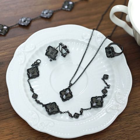 イタリア布Qi-Laceクラフトマンシップ女性の4葉クローバーブレスレットブラックゴールドメッキ鎖骨チェーンリングイヤリング真鍮製