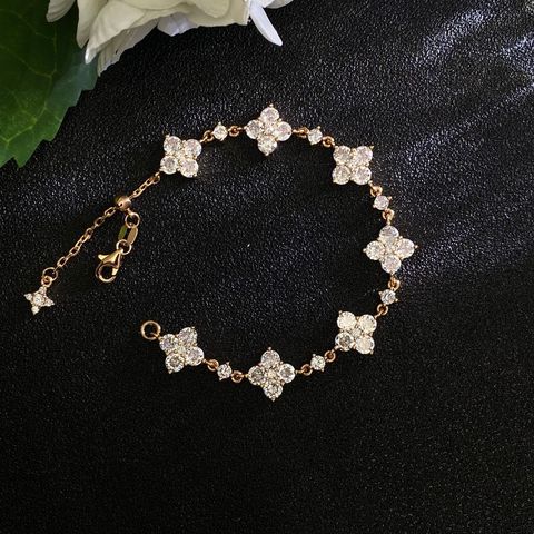 ハイエンド高級インズフラワーブレスレット絶妙な4葉クローバータッセルバブルダイヤモンドデザインロジウムメッキジルコンをメインストーンとして